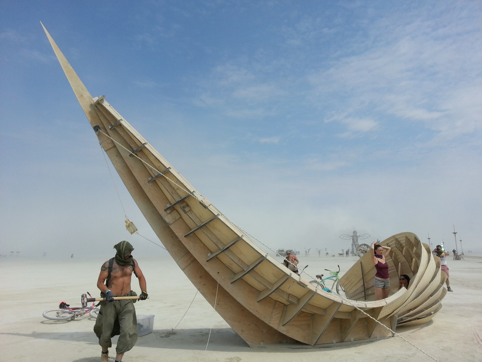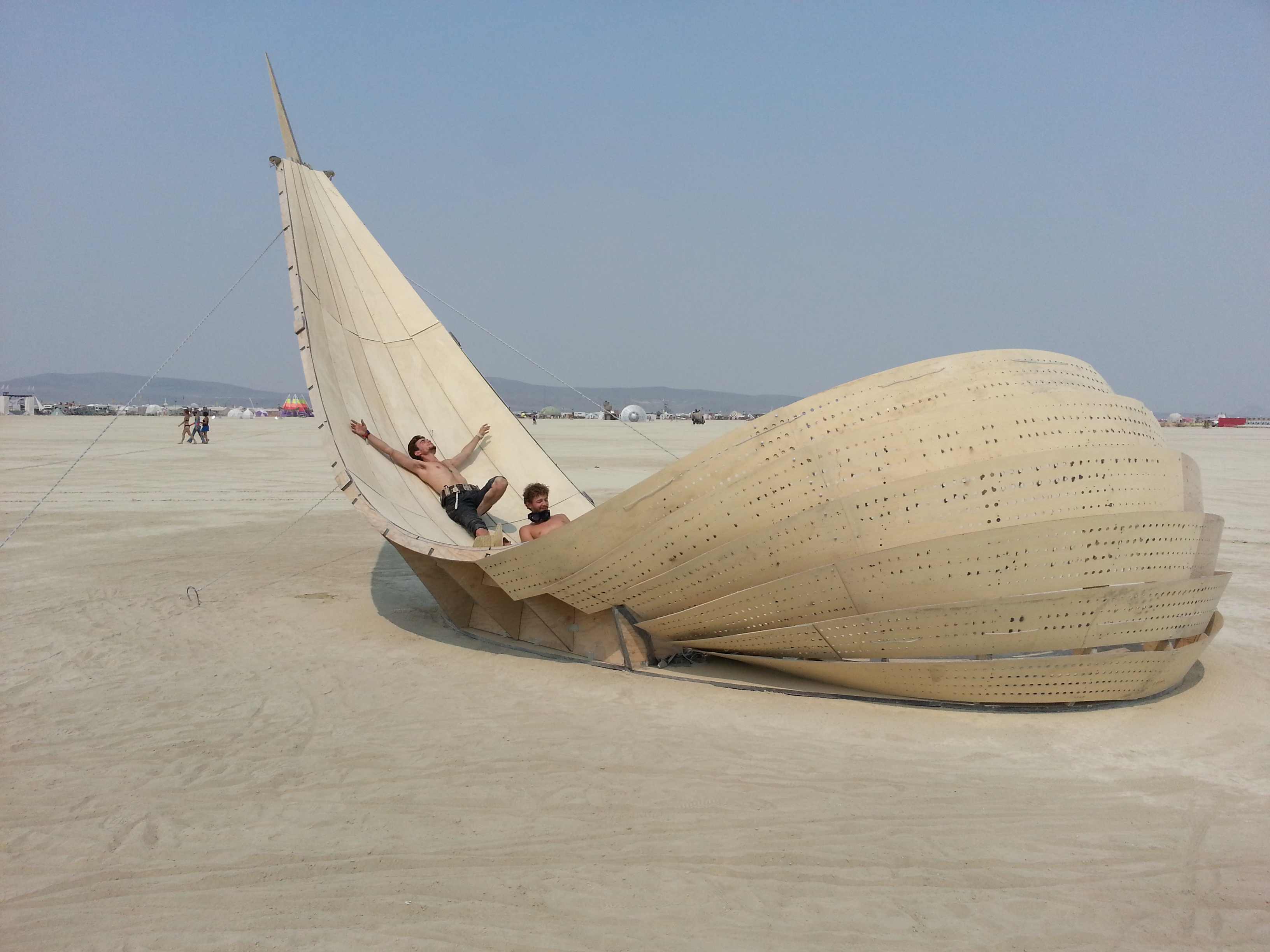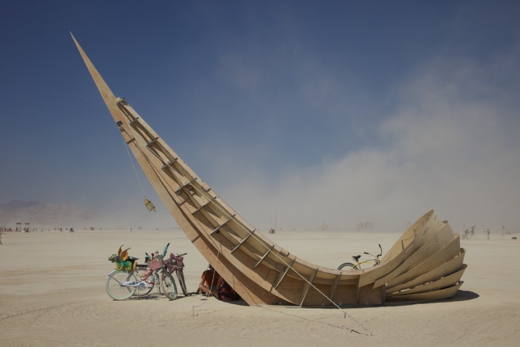 Under the guidance of Toby Burgess and with post graduate students of the University of Westminster’s Architecture course, a number of pavillions have been built in Nevada’s Burning Man Festival.